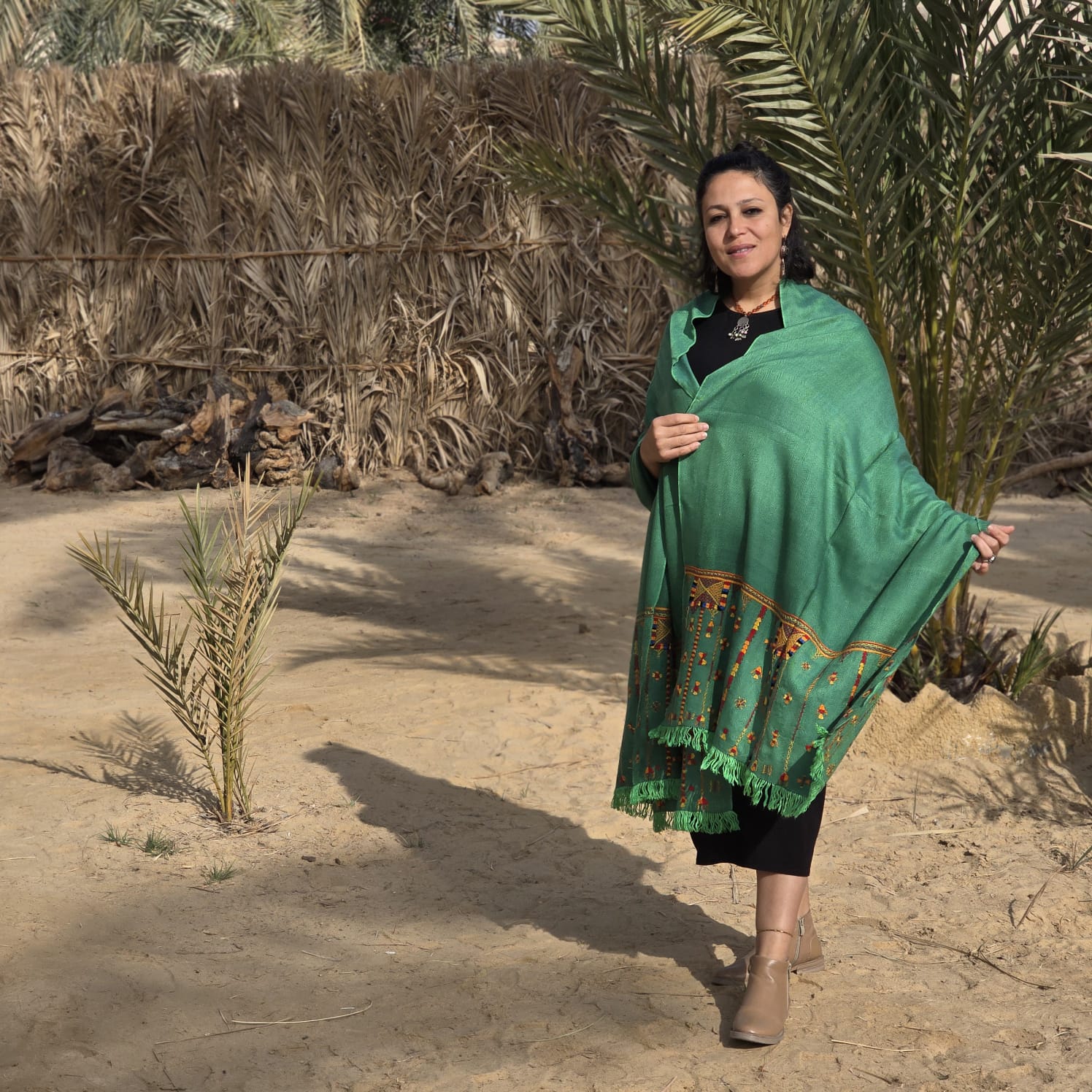 شال قطني ناعم مستوحى من صباحات صحراء سيوة الهادئة. الأقمشة الخفيفة والنقوش الدقيقة تعكس سكينة الواحة، مما يجعله رفيقًا مثاليًا للأيام الدافئة والليالي الباردة.