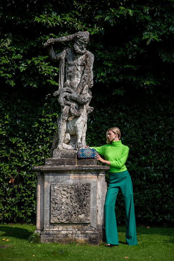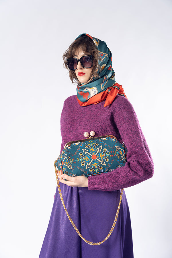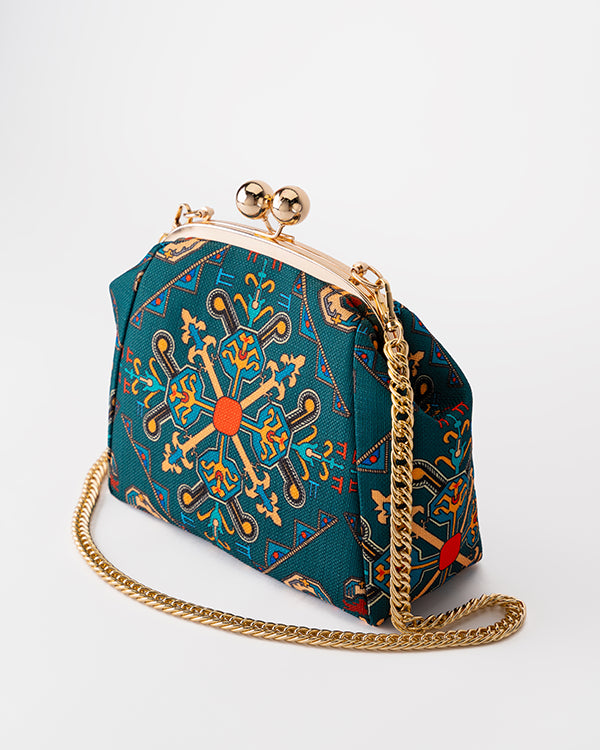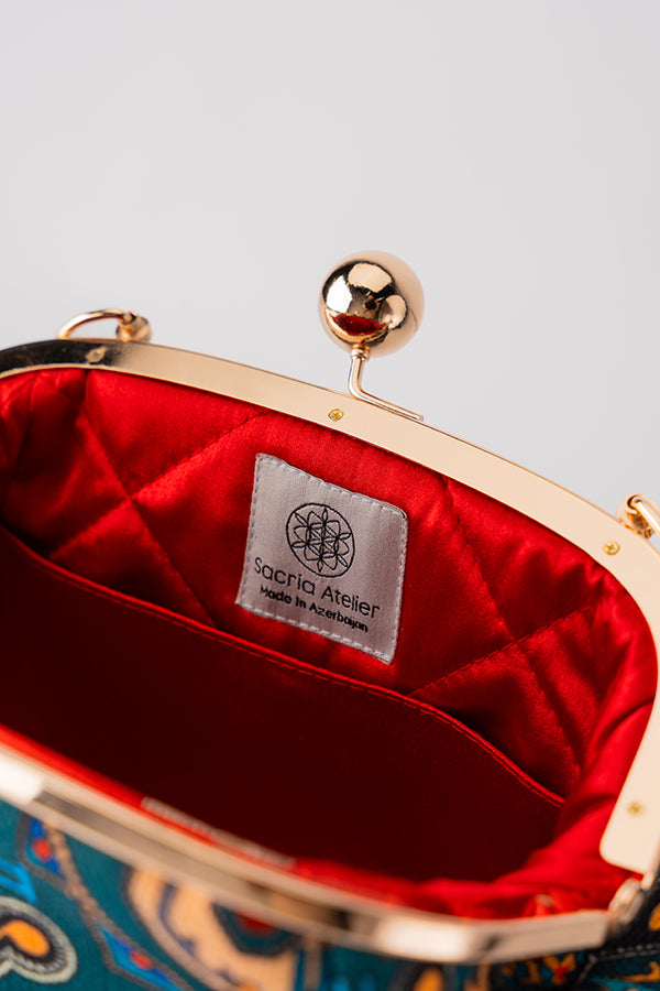 Inspired by the unique historical and cultural heritage of the city of Shaki, in particular the ornaments of the famous Palace of the Shaki Khans, we created our Shaki Bag. The palace, included in the UNESCO World Heritage List, was built in the 18th century by Hussain Khan, is a real work of art - on its facades in the form of a mosaic, were designed plot drawings depicting scenes of hunting and war, as well as various geometric and floral patterns. The design of the Shaki Bag reflects the unique traditional patterned painting technique of the Shaki region, in which we have implemented geometric shapes in our signature style.